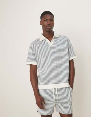 Polo Shirts by ASOS DESIGN Part of a co-ord set Shorts sold separately Stripe design Polo collar V-neck Short sleeves Relaxed fit