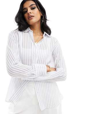 Tops by New Look Add-to-bag material Stripe design Spread collar Button placket Long sleeves Regular fit