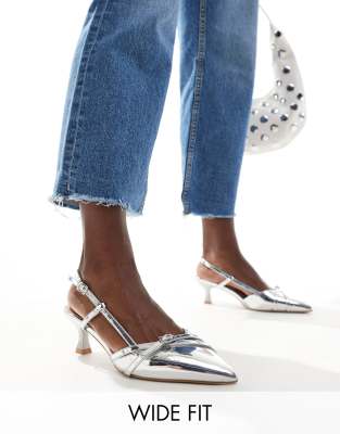 Shoes by New Look Wide Fit Styled from the sole Pin-buckle fastening Slingback strap Pointed toe Kitten heel Wide fit