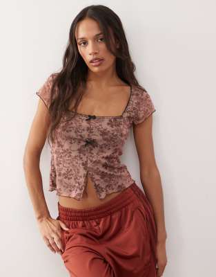 Tops by Reclaimed Vintage Exclusive to ASOS Paisley print Square neck Cap sleeves Bow details Regular fit