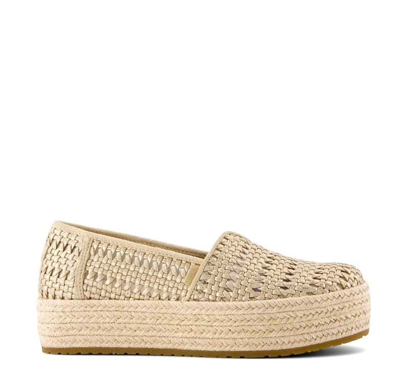 Γυναικείες εσπαντρίγιες από την Toms. Αφαιρούμενοι πάτοι αφρού Custom CloudBound™ για άνεση και υποστήριξη όλη την ημέρα. Το ύψος της εξωτερικής σόλας είναι περίπου 1 1/2". Πλατφόρμα τυλιγμένη με σχοινί. Τακούνι με επένδυση για επιπλέον άνεση.