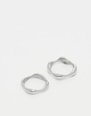 Jewellery by ASOS DESIGN Pack of two Molten designs Fine band You can shower swim and work out with me