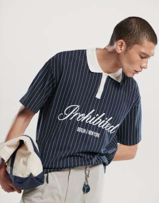 Επισκέψου το κατάστημα Asos για να δεις περισσότερες λεπτομέρειες και φωτογραφίες για το Prohibited collar logo detail football inspired 250gsm shirt in navy stripe. Για αγορά του Prohibited collar logo detail football inspired 250gsm shirt in navy stripe πρέπει να επισκεφτείς το κατάστημα Asos.