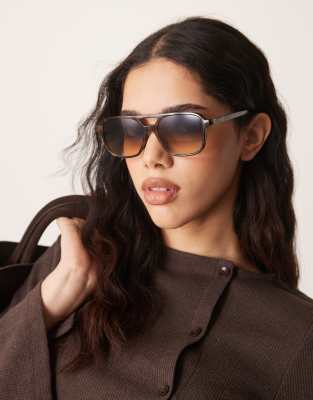 Accessories by ASOS DESIGN Tortoiseshell design Aviator frames Brow bar detail Moulded nose pads Dark-tinted lenses Slim arms Good UV protection