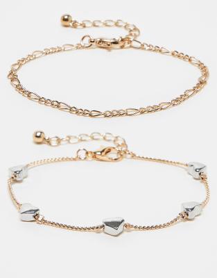 Accessories by Reclaimed Vintage Exclusive to ASOS Pack of two Mixed chains Heart charms Adjustable length Lobster clasp
