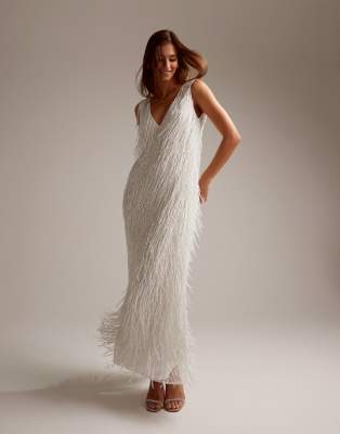 Dresses by ASOS EDITION Bride approved V-neck Sleeveless style All-over fringe detail Deep-V back Regular fit