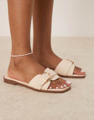Shoes by Raid Wide Fit Woven design Wide buckle strap Slip-on style Open toe Flat sole Wide fit