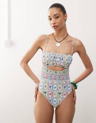 Επισκέψου το κατάστημα Asos για να δεις περισσότερες λεπτομέρειες και φωτογραφίες για το Reclaimed Vintage swimsuit with shirred waist and cut out detail in postcard print-Multi. Για αγορά του Reclaimed Vintage swimsuit with shirred waist and cut out detail in postcard print-Multi πρέπει να επισκεφτείς το κατάστημα Asos.
