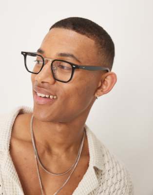Accessories by ASOS DESIGN Square frames Brow bar detail Adjustable silicone nose pads Clear lenses Standard arms