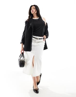 Επισκέψου το κατάστημα Asos για να δεις περισσότερες λεπτομέρειες και φωτογραφίες για το Vero Moda Curve front split denim midi skirt in white. Για αγορά του Vero Moda Curve front split denim midi skirt in white πρέπει να επισκεφτείς το κατάστημα Asos.