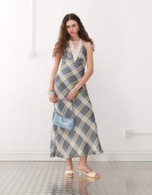 Dresses by Lioness Check design Halterneck style Lace insert Open back Zip-side fastening Regular fit