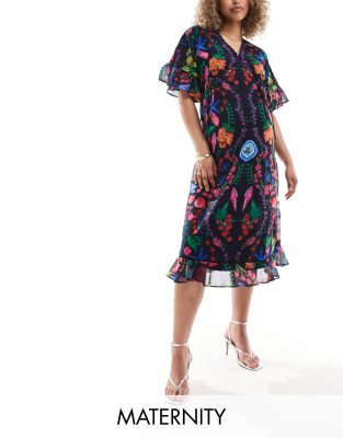 Maternity by Hope & Ivy Maternity Occasions made easy Floral design V-neck Frill sleeves Regular fit