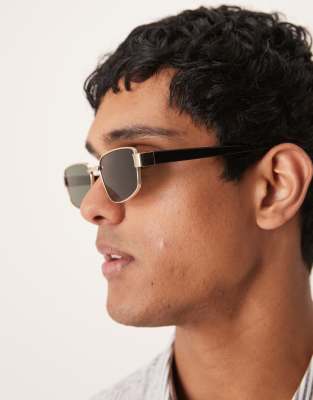 Accessories by ASOS DESIGN Rectangular frames Adjustable silicone nose pads Dark-tinted lenses Standard arms Good UV protection