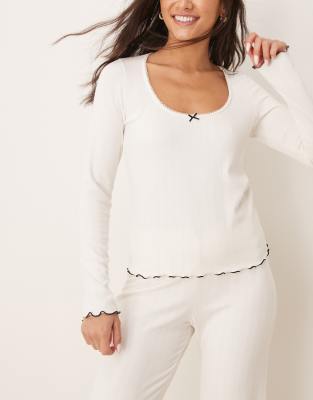 Lingerie & Nightwear by Abercrombie & Fitch Designed for downtime Scoop neck Long sleeves Lettuce-edge trims Regular fit