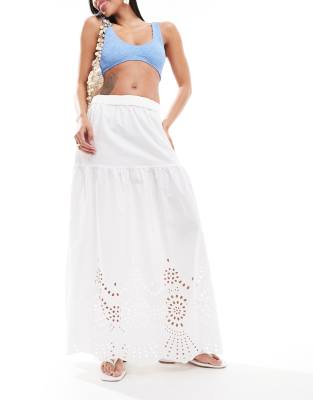 Skirts by ONLY Summertime uniform Tiered design High rise Elasticated waist Cut-work detail Regular fit