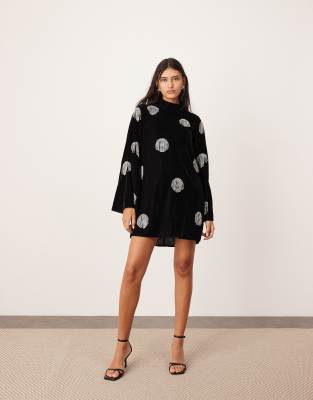 Dresses by ASOS EDITION Let's hear it for the dress High neck Long sleeves Diamante fringing Button-keyhole back Regular fit