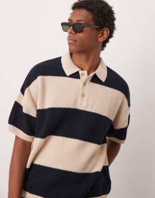 Polo Shirts by ASOS DESIGN Stripe design Polo collar Partial button placket Drop shoulders Oversized fit