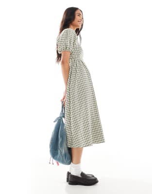 Dresses by Daisy Street Check design Square neck Puff sleeves Shirred stretch bodice Regular fit