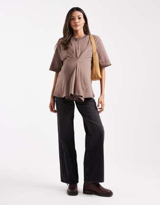 Jeans by ASOS Maternity Wide leg Mid rise Belt loops Five pockets Designed to fit you from bump to baby We’d like you to know our model is wearing a faux bump The bump measures 52cm from side to side