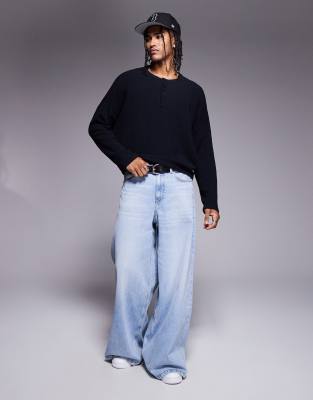 T-Shirts & Vests by ASOS DESIGN Crew neck Partial button placket Long sleeves Cropped length Oversized fit