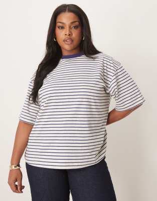 Tops by ASOS Curve Stripe design Crew neck Drop shoulders Oversized fit