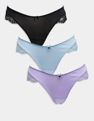 Lingerie & Nightwear by Boux Avenue Pack of three Low rise Elasticated waist Lace trims Thong cut