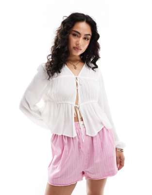 Επισκέψου το κατάστημα Asos για να δεις περισσότερες λεπτομέρειες και φωτογραφίες για το ONLY tie front plisse top in white. Για αγορά του ONLY tie front plisse top in white πρέπει να επισκεφτείς το κατάστημα Asos.