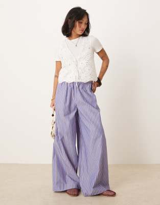 Trousers & Leggings by ASOS DESIGN Stripe design High rise Shirred stretch waist Side pockets Wide leg
