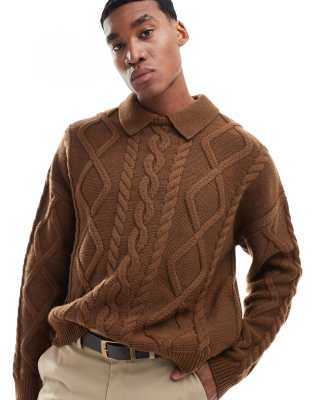 Jumpers & Cardigans by ASOS DESIGN Knitwear until further notice Cable-knit design Spread collar Long sleeves Oversized fit