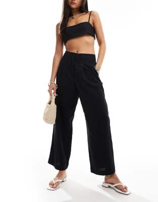 Trousers & Leggings by ASOS DESIGN Out of screenshots into basket High rise Concealed fly Functional pockets Raw-cut trims Wide leg