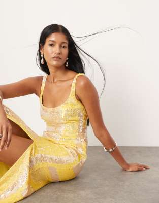 Dresses by ASOS EDITION From one occasion to another Embellished design Scoop neck Fixed straps Side split Regular fit