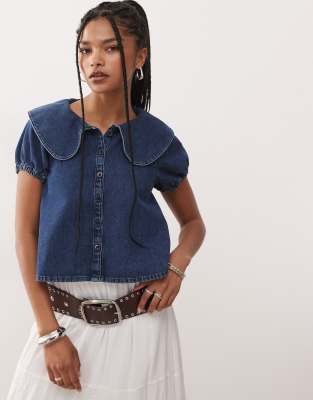 Επισκέψου το κατάστημα Asos για να δεις περισσότερες λεπτομέρειες και φωτογραφίες για το Reclaimed Vintage puffball sleeve peter pan collar blouse in denim-Blue. Για αγορά του Reclaimed Vintage puffball sleeve peter pan collar blouse in denim-Blue πρέπει να επισκεφτείς το κατάστημα Asos.
