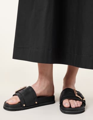 Shoes by AllSaints Slip-on style Buckle detail Open toe Flat sole