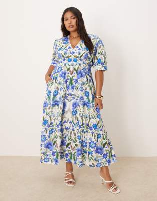 Dresses by Hope & Ivy Plus Floral design V-neck Puff sleeves Side pockets Shirred stretch panel to back Regular fit