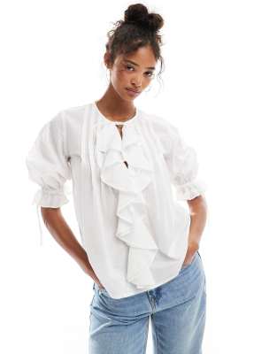 Tops by ASOS DESIGN Round neck Tie front Puff sleeves Pleat and ruffle details Regular fit
