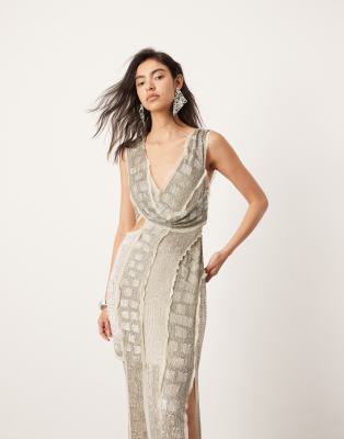 Dresses by ASOS EDITION A memory-making outfit Bead embellishment V-neck Cut-out detail Spliced skirt Zip-back fastening Raw-cut trims Regular fit This product has been hand embellished Due to this process it's delicate and the design may vary