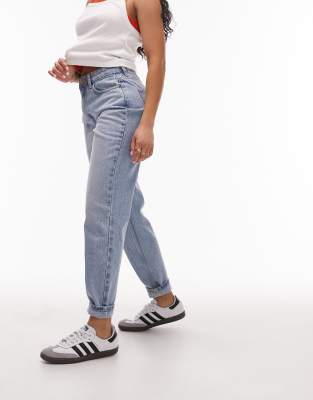 Jeans by Topshop Hourglass Welcome to the next phase of Topshop The iconic Mom style Slim mom fit High rise Belt loops Zip fly Five pockets Ankle length Cut with more room around the hips