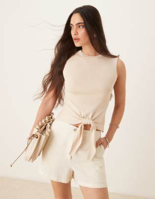 Tops by JDY Plain design Crew neck Sleeveless style Knot detail Regular fit