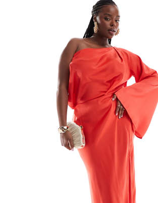 Dresses by ASOS Curve Spotlight-stealing style One-shoulder style Wide-cut sleeve Side split Regular fit