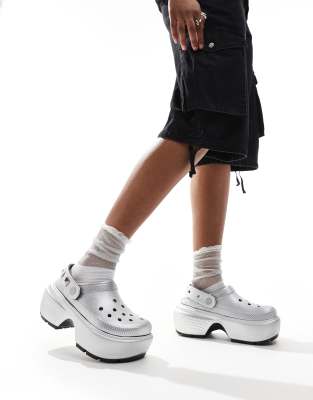 Επισκέψου το κατάστημα Asos για να δεις περισσότερες λεπτομέρειες και φωτογραφίες για το Crocs stomp metallic clog In silver. Για αγορά του Crocs stomp metallic clog In silver πρέπει να επισκεφτείς το κατάστημα Asos.