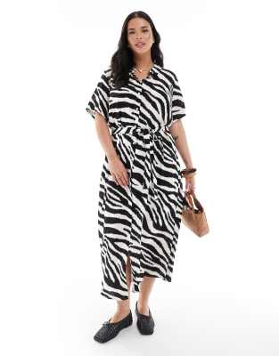 Dresses by Vero Moda Curve Animal print Spread collar Button-through front Short sleeves Tie waist Regular fit