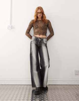 Jeans by Cheap Monday Introducing: the perfect pair Wide leg Mid rise Belt loops Five pockets Spray paint detail