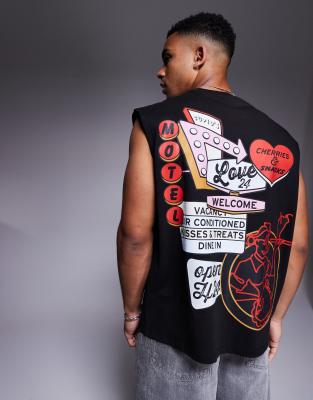 T-Shirts & Vests by ASOS DESIGN Crew neck Sleeveless style Graphic print to back Oversized fit