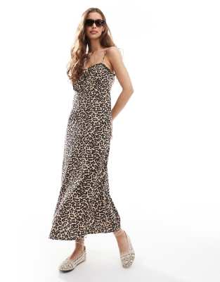 Dresses by ONLY Animal print Square neck Tie front Adjustable straps Regular fit