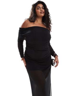 Dresses by Forever New Curve From one occasion to another Off-shoulder style Fold-over panel Long sleeves Ruched sides Sheer hem Side split Regular fit