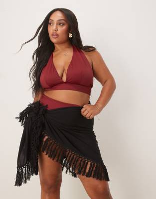 Swimwear & Beachwear by ASOS Curve Sarong style Fringe details Tie fastening Regular fit