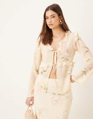 Co-ords by Pretty Lavish Floral design V-neck Long sleeves Ruffle trims Open front Tie fastening Regular fit