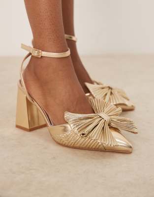 Επισκέψου το κατάστημα Asos για να δεις περισσότερες λεπτομέρειες και φωτογραφίες για το Be Mine Sierra heeled pumps with bow detail in satin gold. Για αγορά του Be Mine Sierra heeled pumps with bow detail in satin gold πρέπει να επισκεφτείς το κατάστημα Asos.