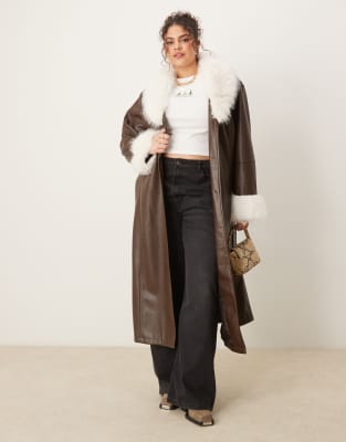 Επισκέψου το κατάστημα Asos για να δεις περισσότερες λεπτομέρειες και φωτογραφίες για το ASOS DESIGN Curve faux fur collar and cuff longline leather look coat in chocolate-Brown. Για αγορά του ASOS DESIGN Curve faux fur collar and cuff longline leather look coat in chocolate-Brown πρέπει να επισκεφτείς το κατάστημα Asos.
