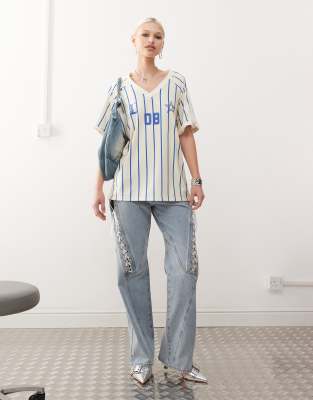 Jeans by Lioness Denim days on repeat Straight fit High rise Belt loops Four pockets Lace-up details